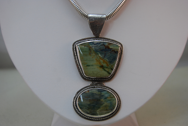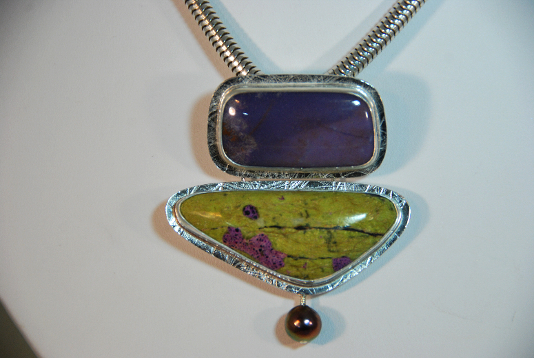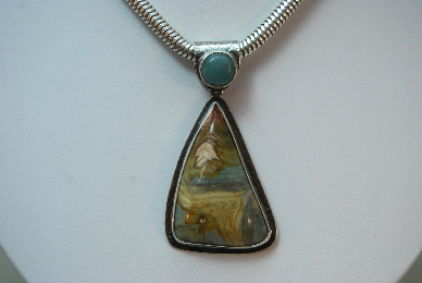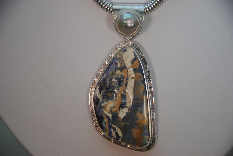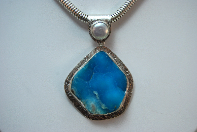 Burro Creek Agate and Atlantisite with Pearl accent Pendant #P0059_2