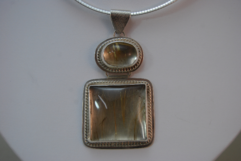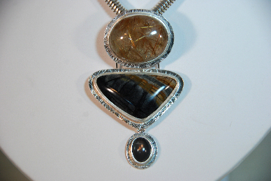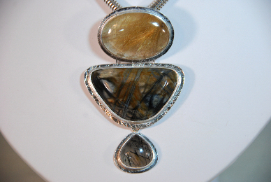Rutilated Quartz and Picasso Marble with Tourmaline Quartz accent Pendant #P0045_2