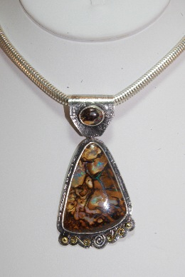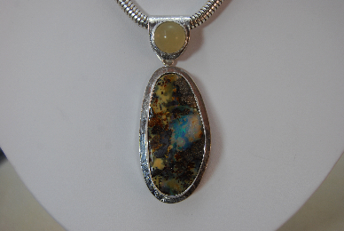 Rare Boulder Opal and Moonstone Pendant #P0014
