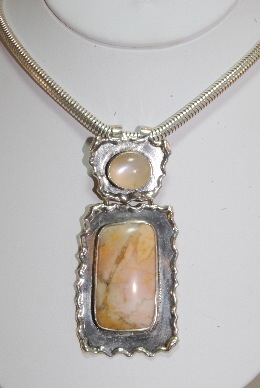 Rutilated Quartz and Picaso marble with Moonstone accent Pendant #P0062_2