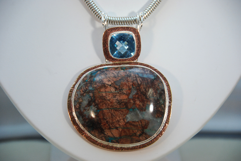 Chrysocolla, Azurite with Brown Moonstone Pendant #P0070_2
