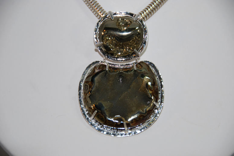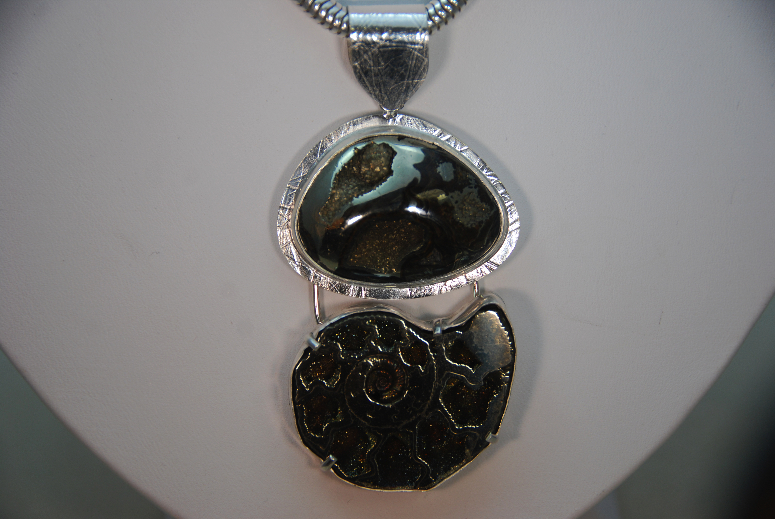 Ammonite Druzy and Pryritized Ammonite Pendant #P0024