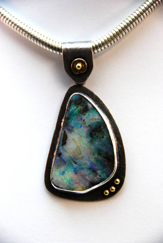 Beautiful Multi-Color Boulder Opal Pendant #P0019