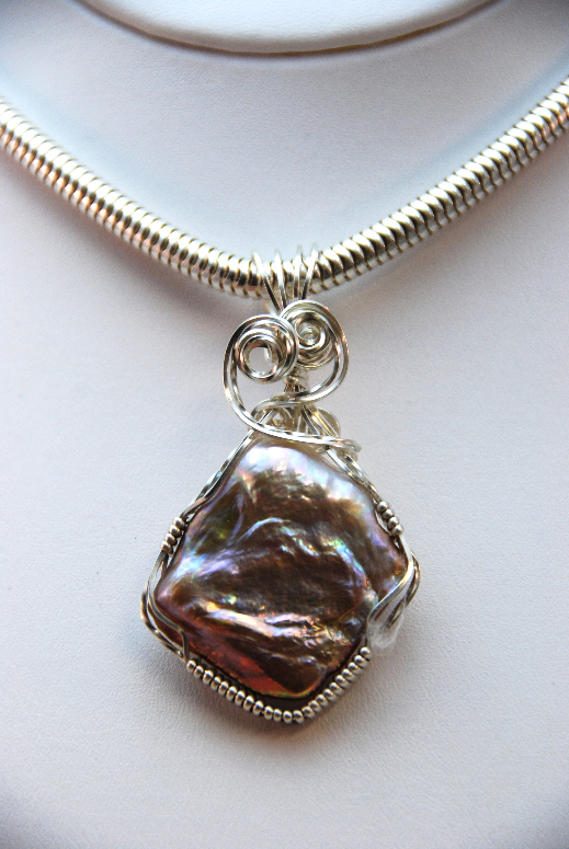 Large Freshwater Pearl Wire Wrapped Pendant #P0032