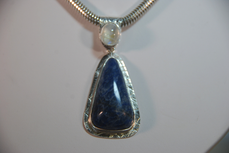 Denim Lapis with Rainbow Moonstone Pendant #P0066