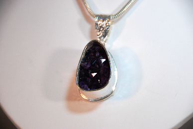 Fossil Ammonite and Chinese Writing Stone with Fossil Drusy Pendant #P0038