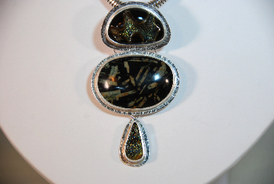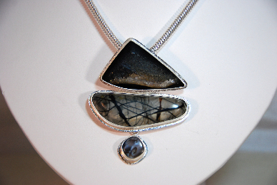 Onyx, Picasso marble, and Mother of Pearl Pendant #P0097_2